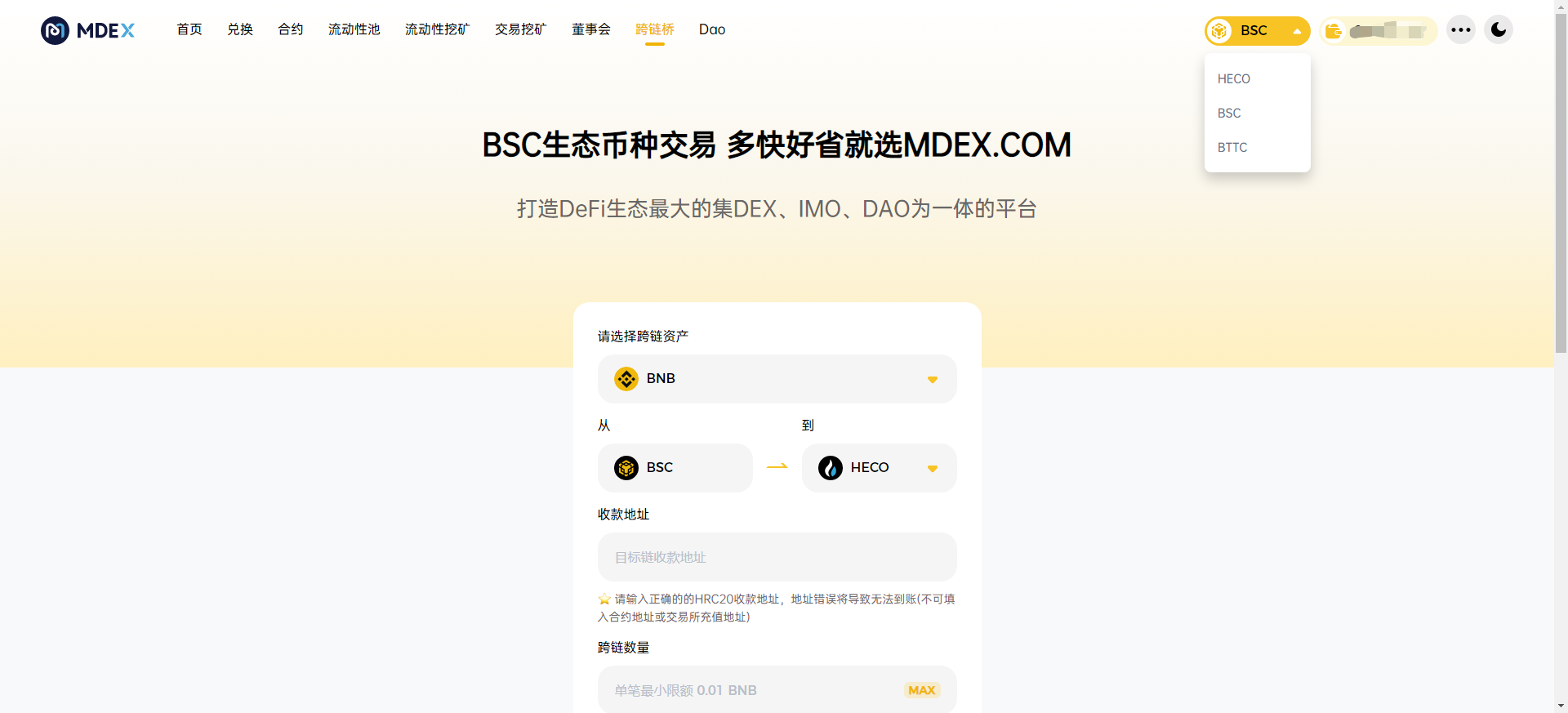 HECO生态币种交易 打造DeFi生态最大的集DEX、IMO、DAO为一体的平台 跨链至HECO、BSC或BitTorrent、以太坊ETH网络 HECO、BSC或BitTorrent网络