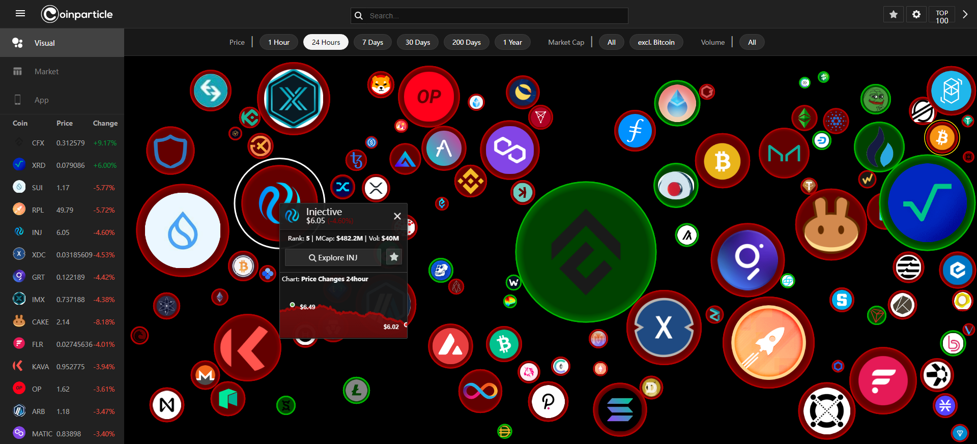 市值前100分析,可视化价格、市值、交易量、涨跌排行等